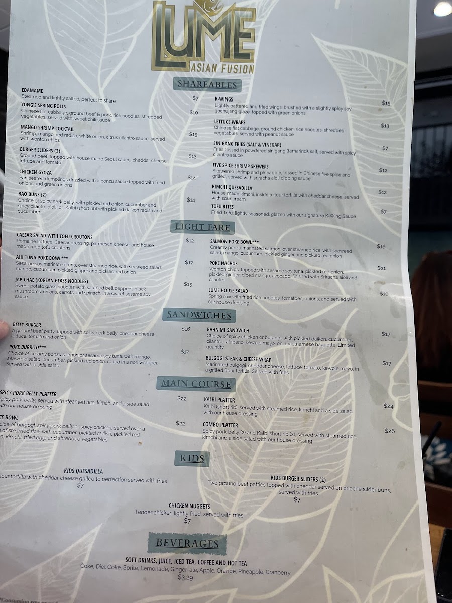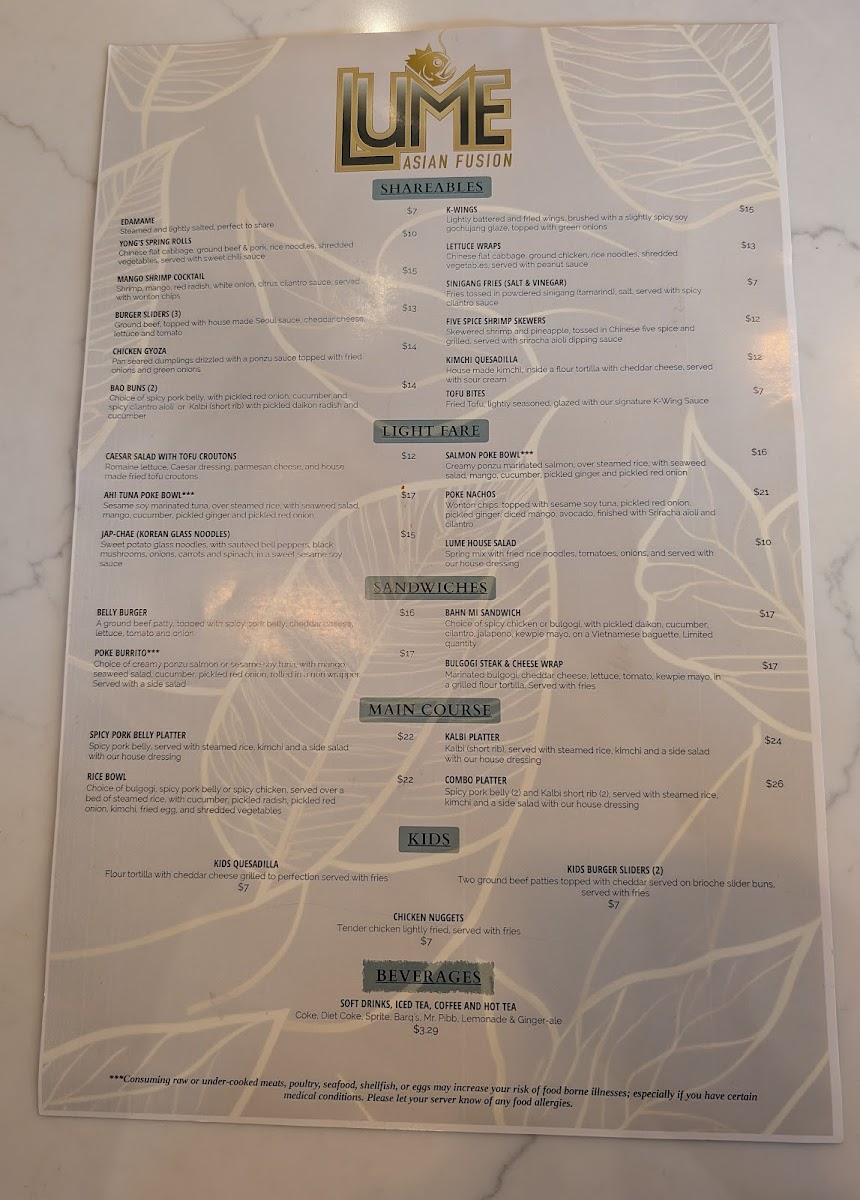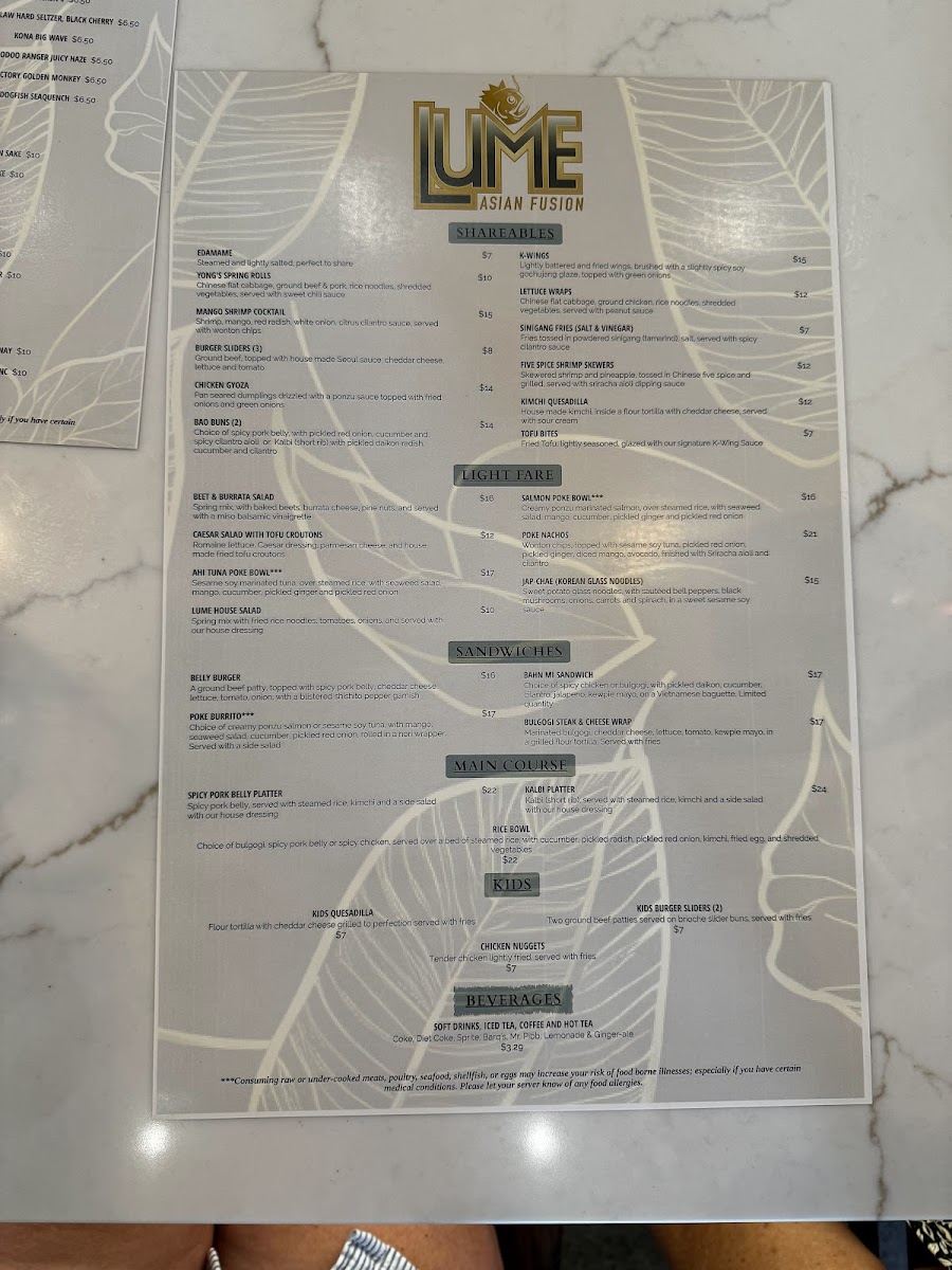 Signature offerings include the popular bulgogi burrito and the crave-worthy kimchi quesadillas ($12). Diners rave about the lettuce wraps and unique sinigang fries, making it clear that every plate is a celebration of flavor. The atmosphere is warm and welcoming, enhanced by the attentive service from staff like Kyle and Andrew, who elevate the dining experience. With a commitment to quality, it’s no wonder Lume Asian Fusion is a must-visit destination for food lovers in search of something new and exciting!